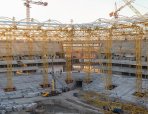На текущий момент на стройплощадке стадиона завершены работы по возведению крыши, и строители приступили к монтированию специального мембранного покрытия, обеспечивающего определенный доступ солнечных лучей.
